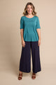 Tani Clothing Australia Elbow Swing Tee in Black has a slightly higher neckline. A very Popular style in all colours with a slightly longer short sleeve finishing just above the elbow this style shows off a lovely detail at the shoulder too!