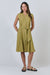 This sleeveless linen dress features a subtle V-neckline and delicate buttons down the front, complemented by a tie belt that elegantly defines the waist. Crafted from 100% breathable linen, its soft, flowing skirt delivers effortless grace and refined comfort, perfect for warm days or layered styling.