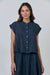 Experience effortless elegance with the Linen Button Top in Poseidon. Crafted from 100% linen, its modern relaxed fit, band collar, and cap sleeves ensure breathability and comfort on warm days. The subtle pleated back detail adds a refined touch, while the button-down front offers versatile styling options, perfect for both casual and polished looks.