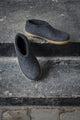 Felt shoe of 100% pure natural wool in the classic color charcoal with a sole of black rubber.