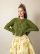 Scrumptiously warm, cute & cosy. Merino & Mohair crop cardigan with subtle diamond pattern through the body to add a little texture.  5 shell buttons & lovely long rib sleeves. Kid mohair + merino wool knitted cardigan. Crop style -...