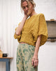 Avoid ironing linen to preserve the fabric’s fibres and natural creases. You may use a steamer to soften wrinkles. Hang your linen garment on a padded hanger or fold it neatly and store it away from direct sunlight.