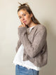 Merino & Mohair crop cardigan with subtle diamond pattern through the body to add a little texture. 5 shell buttons & lovely long rib sleeves.