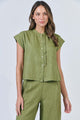 Effortless sophistication meets everyday practicality in this linen button-up blouse. The subtle ruffle detailing along the placket adds refined texture, while structured cap sleeves provide polished definition. Crafted from breathable 100% linen, this versatile piece transitions seamlessly from casual afternoons to more formal occasions. The clean, minimalist back and timeless button-front design ensure you'll reach for it again and again—no styling stress required.