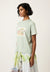 The crew neck T-shirt features short sleeve and a relaxed fit.