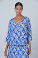 Your everyday essential elevated with understated elegance. This blouse features a refined V-neckline with three-button closure and a softly gathered yoke that creates a flattering, relaxed silhouette. Crafted from breathable 100% crinkle cotton, it offers effortless comfort throughout the day. Three-quarter bell sleeves provide a graceful drape, while the easy fit pairs seamlessly with coordinating pieces for both leisurely weekends and casual social occasions.