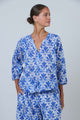 Your everyday essential elevated with understated elegance. This blouse features a refined V-neckline with three-button closure and a softly gathered yoke that creates a flattering, relaxed silhouette. Crafted from breathable 100% crinkle cotton, it offers effortless comfort throughout the day. Three-quarter bell sleeves provide a graceful drape, while the easy fit pairs seamlessly with coordinating pieces for both leisurely weekends and casual social occasions.