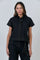 This Cap Sleeve Shirt in Stitch Detail Black combines effortless style with breathable comfort. Crafted from 100% poplin cotton, it features a button-down front, a classic collared neckline, and short sleeves for a refined summer look. Two chest pockets add subtle detail, while the slightly longer back with a central pleat creates graceful movement. Its understated design makes it an elegant choice for warm days, seamlessly blending sophistication with everyday ease.