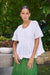Effortlessly elegant, this pleated blouse embodies understated sophistication for warm-weather wardrobes. Soft front pleats and delicate flutter sleeves create graceful movement, while the 100% crinkle cotton fabric offers breathable comfort and natural texture. A refined scalloped hem adds a subtle finishing detail that elevates the piece beyond the everyday. Perfect for those who appreciate timeless design with gentle, feminine touches.