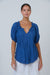 Effortless elegance meets refined comfort in this timeless blouse. Crafted from textured 100% crinkle cotton, it features a graceful V-neckline adorned with delicate ruffle trim and a subtle button accent. Puff sleeves and a gently bloused silhouette create a flattering, feminine shape that transitions seamlessly from casual to polished occasions. Style with printed or tailored bottoms for an understated, sophisticated look.