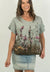 This photo is printed on a lovely soft slightly crimped linen. The fabric is printed in India and the garment is made in our studio in the Byron Bay hinterland.